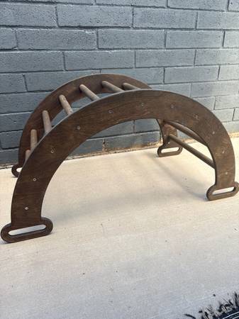 This wooden bridge is perfect play prop for any kids room! My kids have outgrown it. 41” long, 21” across, and 20” high. Only $30!