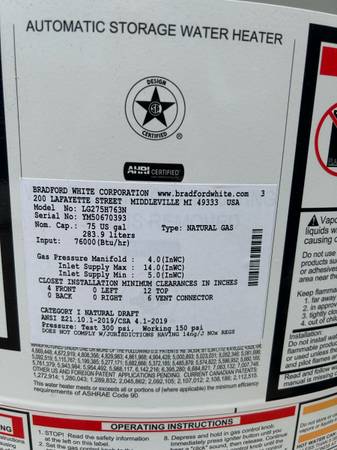 This Bradford White hot water heater is new never been used. It has a dent in the bottom, see pics. Make me a reasonable offer