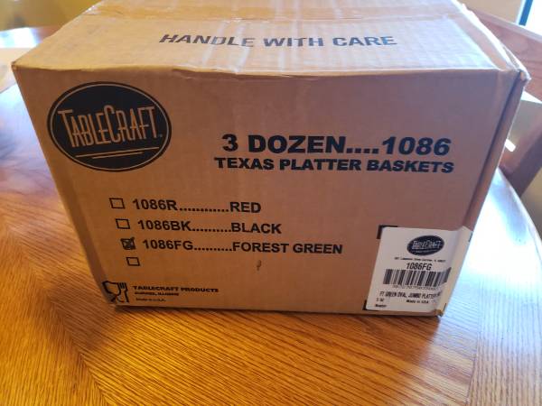 THESE ARE NEW IN CASE. Have had them a long time. Cases are a mess from storage but Basket are great. Call Dave in Tucson PLASTIC BASKETS Tablecraft 1086FG Texas Platter 12 3/4" x 9 1/2" x 1 1/2"...