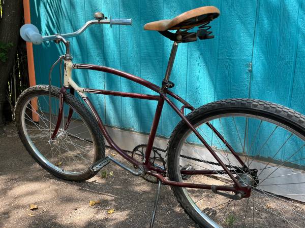 1951 refurbished Schwinn Klunker that rides like a dream! Serial number H035005=1/20/1951. Components: Morrow coaster brakes; Skip tooth heart crank; beautiful headbadge; kickstand. Original paint with just the right amount of patina! This is one sweet ride that always turns heads!!!!!