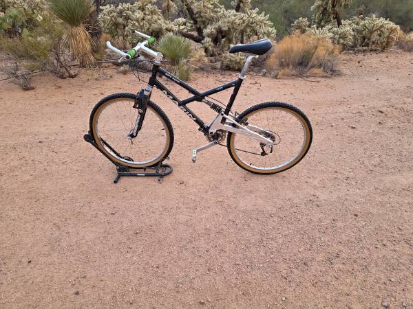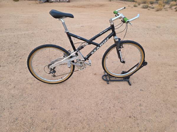 Marin Rift Zone (RARE) competition full suspension 24 speed bike. The Marin bike is aluminum all purpose Men's bicycle with several quality Product Features: Full adjustable suspension system with front fork adjustable shock Absorption System for all riding conditions, handlebars with Brake & Quick hand Shimano shifters controls, front shocks forks, all aluminum frame, Smooth-shifting 24-speed quick shifters and Shimano Deore LX rear derailleur, comfort riding seat. This is very nice bike with all aluminum CAD-3 frame, New tires & 26-inch wheels. The bicycle is in good condition may have lite some scuffs & scratch marks, may need lite tune/check-up service. Made in the USA! Pickup only, $200.00 Cash only, Please call or text (520) 28 nine -04 nine 8 (No Codes or Emails!)