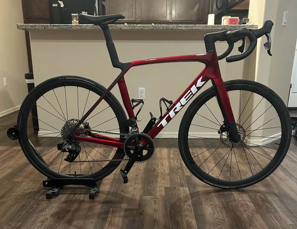 Gen 8 SL6 Madone size M/L (56) Crimson Red, ~250 miles. Delivered July 2025, selling due to unrelated injury.