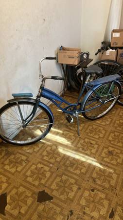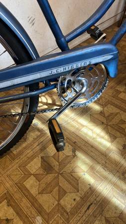 Late 50s early 60s JC Higgins 26” Girls/woman’s beach cruiser mostly original new tires new tubes new chain all bearings have been cleaned and re-greased super comfortable seat was reupholstered a couple years ago Bike rides like new needs nothing hundred dollars firm located by u of a