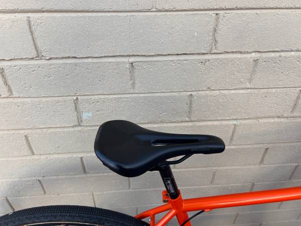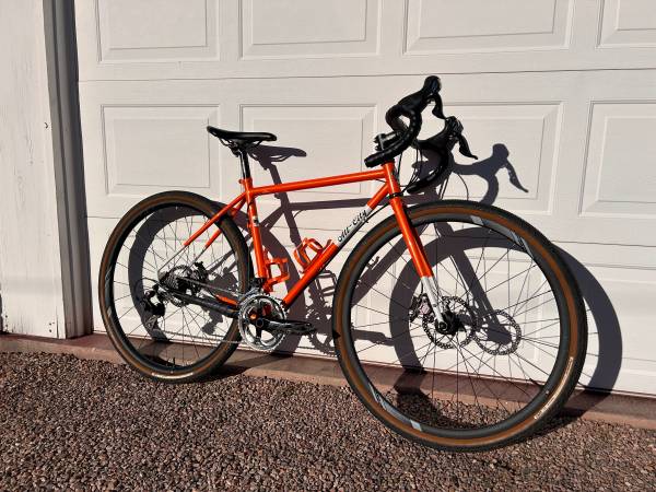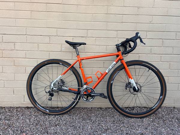 Fun steel gravel bike with some upgraded parts. Wheels are FSA and brakes are TRP cable actuated hydraulic disc brakes. Frame size is 46cm and fits me well at 5’4. Paint does have some dings and...