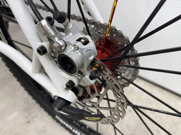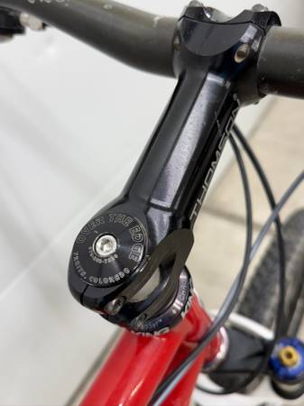 This is a 2009 Edge Cycles steel hardtail in frame size large, front suspension only. If you are looking for a classic steel hardtail to shred the Tucson singletrack, this is it. It is built with XTR shifters and crank (3X9), Thomson seat post and stem, Chris King headset, Magura front fork, Hope hydraulic disc brakes front and rear, and 26” Mavic Crossmax SLR tubeless wheel set, and new tubeless tires. Frame has some scratches, but no dents or other damage. No pedals. This was my bike that I had custom built by Troy Rarick at Edge Cycles in Fruita, CO. Priced at $600 cash only, but if you are serious, message me and we can chat. You can see this bike at the 2025 GABA Tucson Bike Swap Meet on 16 November at my stall.