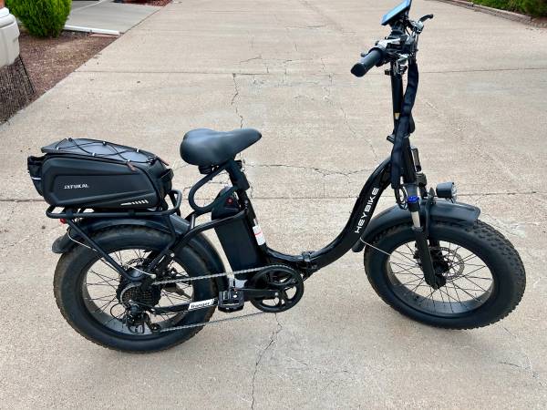 Great bike! Peak 1400W Upgraded Motor, 7 speed, 28MPH, 60 miles full bat, [20" Fat Tire All-Terrain] 600Wh Removable Battery, Folding, Step-Thru, Front Suspension. Peddle assist, front and rear lights, additional accessories, helmet, heavy-duty lock, detachable front dog basket, Bike cover, Rear basket, barely used. Only 5 miles on the odometer.
