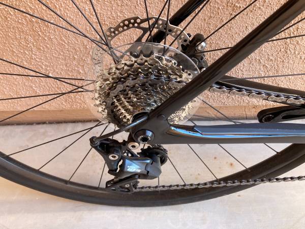 Carbon frame with an oversize bottom bracket junction, deeper-section down tube and 415 mm chainstays creates a more responsive yet forgiving bike when accelerating