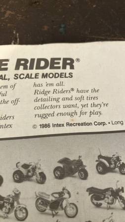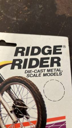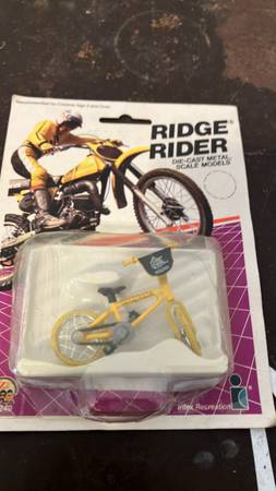 Ridge rider Mongoose Moto, mag diecast toy from 1986 brand new, but the plastic part has landed from the cardboard part of the packaging but the toy is in perfect condition. 20 bucks for a complete...