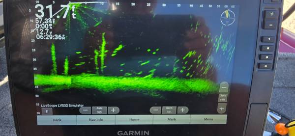 Bow mounted Garmin ECHOMAP Ultra 2 106sv Fish Finder with livescope.
