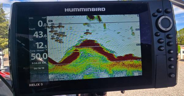 1 Humminbird Helix 9 Gen 4 mounted at console on Balzout mount.