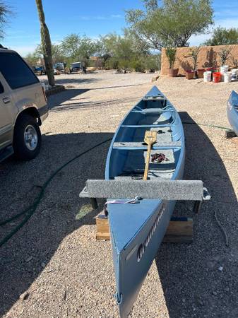 18 FT GRUMMAN ALUMINUM CANOE. New catalyzed paint inside and out. Custom motor mount. (No motor) Custom rod and cup holders. 16 ft shielded 10 gage battery cables for front battery placement. Registration required .Approx $30 . Required only if using motor. Can be mounted on top of SUV, truck or ATV/QUAD type trailer. SIMILIAR GRUMMAN MODELS STILL FOR SALE $2000 PLUS. NOTE. CANOE FOR SALE IS CENTER CANOE. 17 FT IN BACKGROUND STILL FOR SALE. FRONT 18 FT HAS BEEN SOLD.