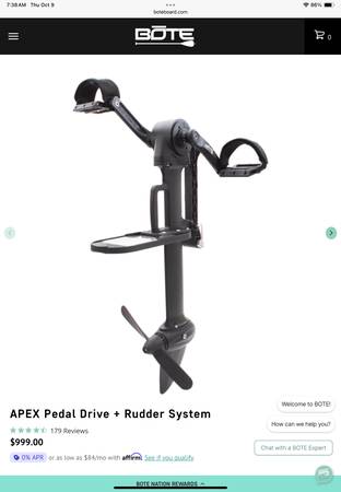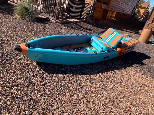 BOTE LONO kayak and pedal set. Manufacturer’s kayak list price $1749, pedal set list price $999, plus tax, offering both for $1500. Comes with pump and transport bag.
