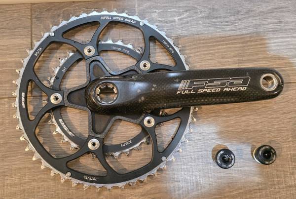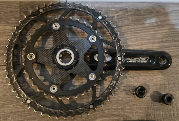 Up for sale is a FSA carbon crankset. The crankset is carbon with a carbon spider as well. 50/34 x 172.5mm. Shimano Octalink V1 compatible. Includes crank bolts. I have the bottom bracket if you want to buy that as well.