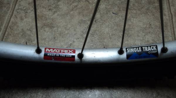 -Matrix 26" Single Track Comp Front Wheel with CST Camber Tire. Tire is in good condition, wheel is straight and bearings roll well.