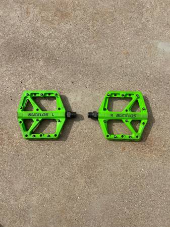 Fluorescent green mountain bike or gravel bike pedals in good condition. $10.00 Five Two Oh 360 7oh 82