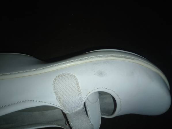 Selling a pair of gently used white Klogs size 8.5. These are the most comfortable shoes I have ever owned but now I have a foot bone issue and unable to wear any of my closed tied shoes, so im selling all the shoes I can't wear anymore. They do have two small scuff marks on the left shoe but they are in great condition. Please text five...two...zero...eight...seven...zero....six...zero...two...nine.