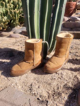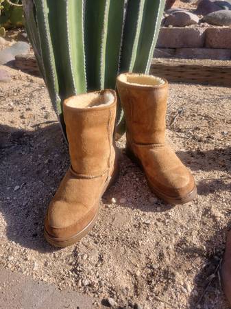 Warm tan suede boots. Perfect for cold weather. Gently worn UGG boots size Men 6, Ladies 7. Small water spot on front inside, noted in pictures. Original Australia. Local cash pickup NW Tucson by...