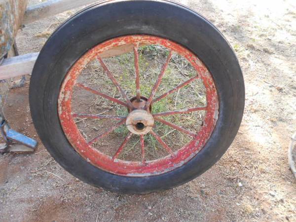 antique tire and wheel good yard art or ? call 256-4777 no text