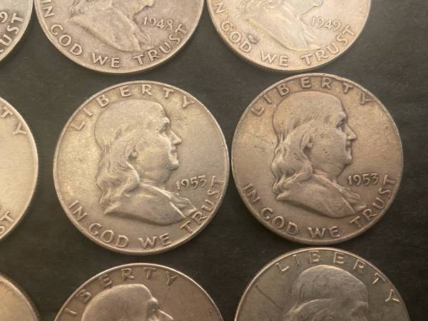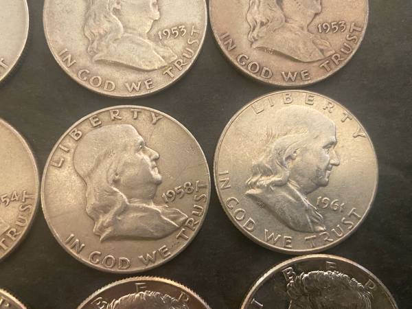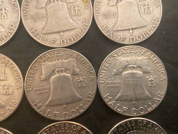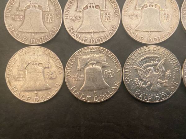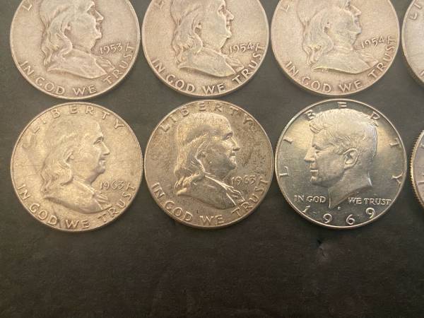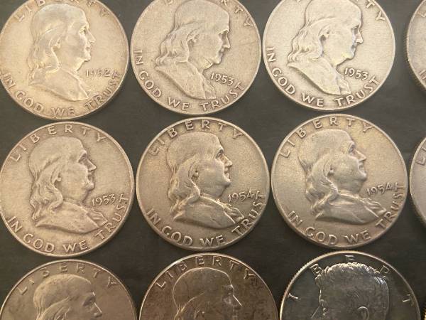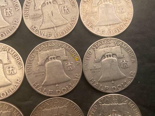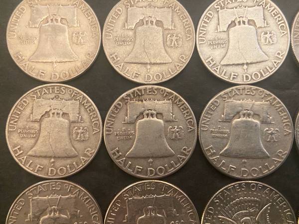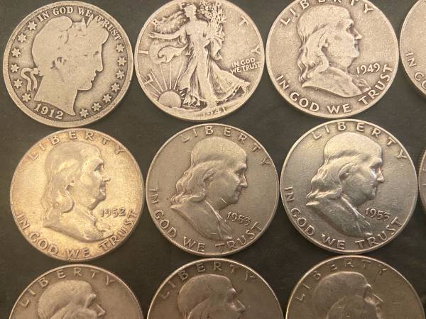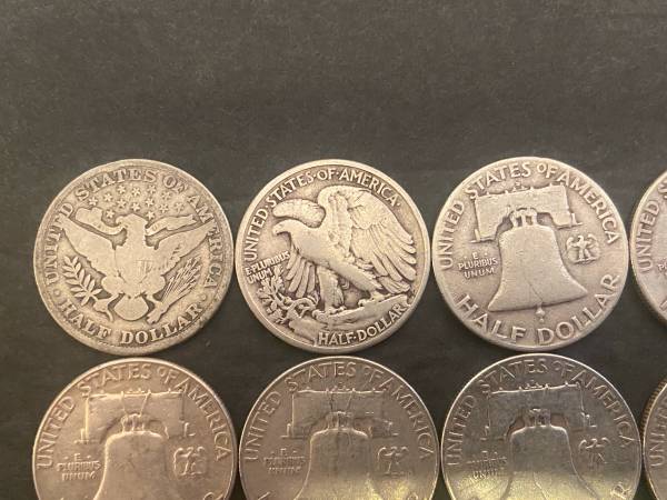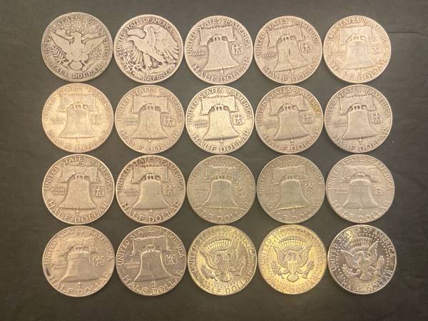 This listing is for a roll of 20 90% Silver Half Dollars. The roll is made up of a Barber Half Dollar, a Walking Liberty Half Dollar, 15 Franklin Half Dollars and 3 Kennedy Half Dollars. Please take a look at all of the photos. The asking price is at spot melt price for silver.