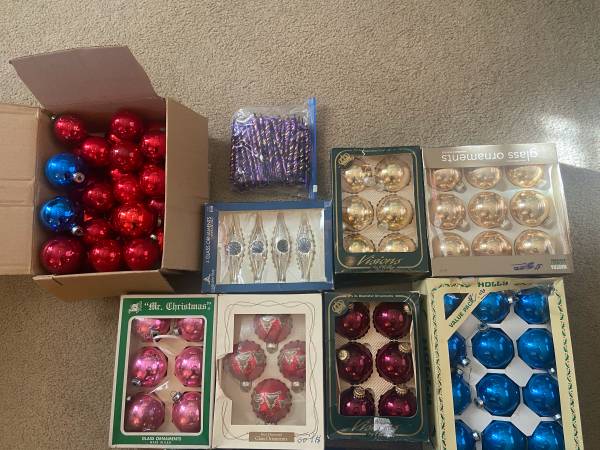 This listing is for a lot of vintage Mercury Glass Christmas Ornaments that are in various conditions from very good to fair.