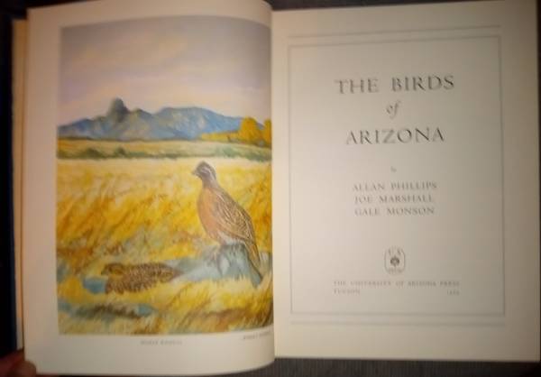 This is a very rare hardback book. Published in 1964 by the University of Arizona press. It contains approximately 215 pages of very interesting and informative details of many of the birds in Southern Arizona.This may be the most informative book ever published about birding in Arizona.