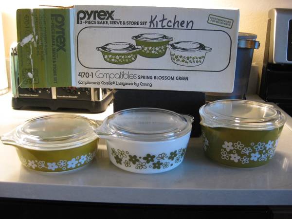 1970s pyrex 3-piece set this is in mint condition in the box call 256-4777 NO TEXT CALLS ONLY