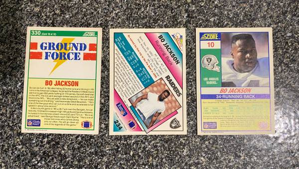 1990 SCORE BO JACKSON GROUND FORCE CARD #330 1990 SCORE BO JACKSON RAIDERS #10 1991 PACIFIC BO JACKSON RAIDERS #234 Make an offer