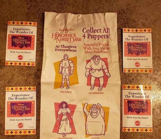 Burger King Disney's 1996 The Hunchback Of Notre Dame Puppets Figures - $20 (Tucson)