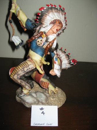 I have 5 Franklin Mint Native Figurines in excellent condition, as shown in pictures below. REDUCED-- $50.00 each. There are also 6 other Indian Collectibles @ $ 100.00 for all 6 -- OR -- MAKE REASONABLE OFFER FOR ALL -- I do not text. E Mail please.