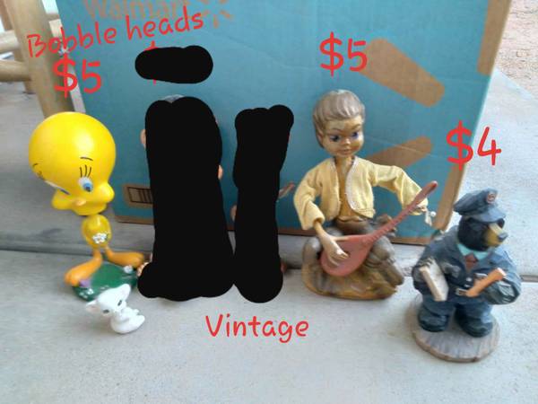 Vintage. Old gals are,"oh you doll". Clowm , Cowboy, Pig, Parrot, Bobble head tweety bird, Bear, and more. Now Accepting Reasonable Offer for All.