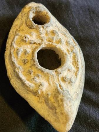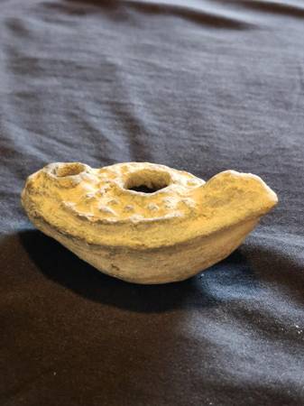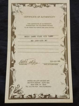 Antiquity Holy Land Clay Oil Lamp with Certificate of Authenticity. Estimated to date between 100 BC to 100 AD.