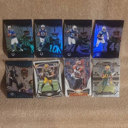 This listing comes with over 100 Panini NFL football cards from multiple sets. The collection includes rookies, veterans, and legends on base cards, inserts, and parallels mostly from the 2024 season but a couple are from older years. All the cards were recently pulled from fresh packs and are in great condition. Please see both pictures for details. The collection includes: