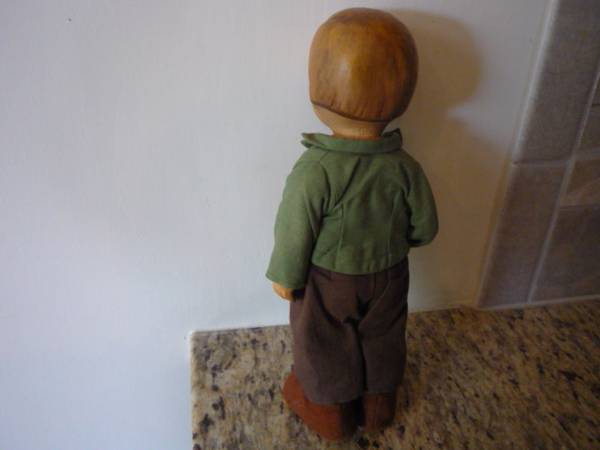 Accessories include a travel bag, hat and umbrella. The original tag reads "Wander Bub, Original M. J. Hummel" on one side and "W Goebel Oeslau" on the other side. He has rainbow socks and a pocket...