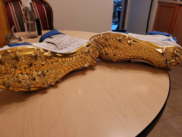 These are extremely rare with only a few ever made. Size 13 lineman cleats. Gold bottom. Hardly worn a few times. Text 52zero-26nine-81zero1