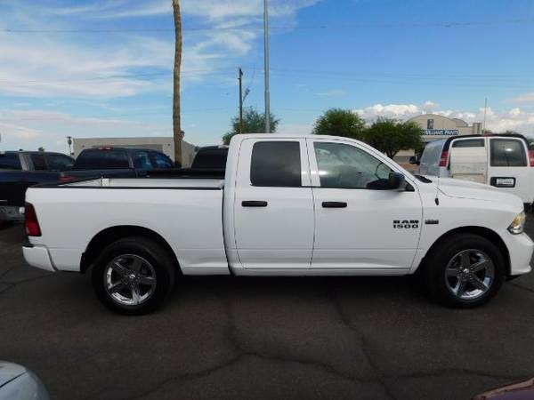 Heres a sharp and capable 2014 RAM 1500 Quad Cab Express, built to handle work, play, and everything in between. This truck delivers the power you expect from RAM along with a comfortable interior and modern styling. The Quad Cab design gives you extra rear seating, making it versatile for both family use and jobsite demands. With its Express trim, you get bold looks and plenty of utility all in one package.Highlights:Strong performance with dependable powertrainQuad Cab design for added passenger spaceExpress trim with sporty styling and useful featuresPerfect mix of capability, comfort, and styleAt Heritage Motors, financing is never an obstacle. With our Buy Here Pay Here , we work with any credit situation to help you drive away in the truck you need.Come see this RAM today at 1531 N. Pinal Ave, Casa Grande, AZ 85122, or call us at 520-836-4795 for more details.Heritage Motors reliable trucks and flexible financing for everyone.Heritage Motors is family owned and operated! We are a BUY HERE PAY HERE and have been in business for over 20 years!! Heritage Motors is now reporting credit through Equifax!! Come grow your credit with us!! Largest inventory is Central ARIZONA and Tri-Valley Area!! Heritage Motors is located in Arizona the home of cactus jack rabbits, and dry heat. Come in and let us work our magic auto sales for you to get the best auto deals possible, and Drive Now. Its Drive time! Let's get you into a premier auto for you and your family, and take auto action now!!! We cover all of AZ from Tucson to Flagstaff, Yuma to Show Low, Maricopa to Globe, Phoenix to Sierra Vista! Come see why we are the best in the business!!! If you have a question about a vehicle and you don't see the answer here give us a call at 520-836-4795! We are ready and willing to help you find the perfect car for you! We have the largest inventory in central Arizona so if you don't see it here call us and see if we have it at another lot or if its coming soon!