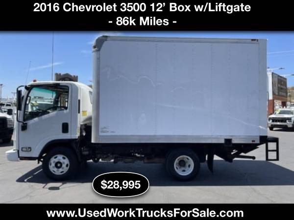 1-Owner - Clean CarFax - 2016 Chevrolet W3500 Cab Over Engine Work Truck with 12ft Box and Maxon 2,000lb tuck-away liftgate - 6.0L vortec v8 gas engine, 6-speed automatic transmission, a/c, power windows, power locks, cruise control and am/fm stereo with usb and auxiliary audio input. This truck has been thoroughly inspected, serviced and includes 3-month/3,000-mile powertrain warranty. For more information call (877) 870-8782.