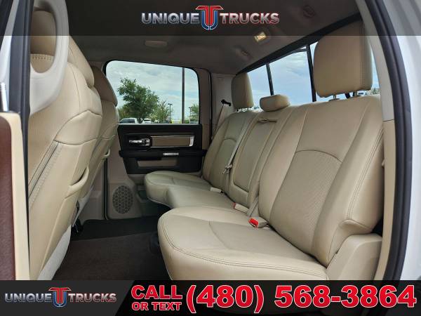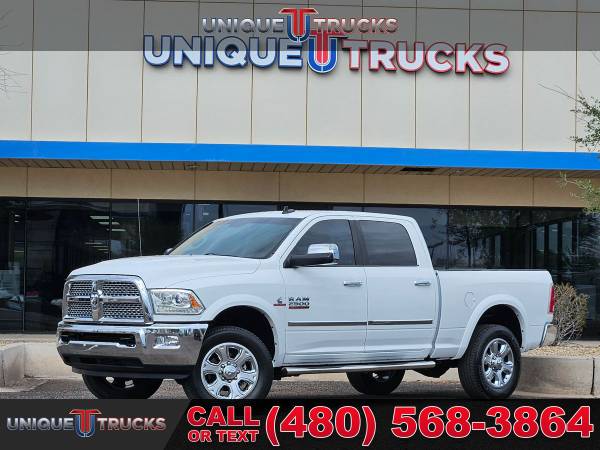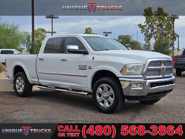This 2015 Ram 2500 Crew Cab 4x4 Laramie is one of the cleanest diesel trucks you’ll find and it’s built to turn heads everywhere it goes. The Bright White Clear Coat exterior is matched perfectly with chrome bumpers, chrome grille, and chrome mirrors that give it a sharp and bold look. The polished aluminum wheels and all-terrain tires make this truck stand tall, while the details like the chrome bodyside molding and step bars add to its strong presence. This Ram has the kind of look that’s guaranteed to get noticed.Step inside and you’ll see why the Laramie edition is one of the most sought after trims. The Light Frost Beige and Brown leather interior makes the cabin feel both sharp and inviting. Heated and ventilated front seats, heated rear seats, and a heated steering wheel make sure comfort is there no matter the season. The interior also features real wood and chrome accents, memory seating, and premium finishes that set it apart. This is a truck built for long drives, busy days, and everything in between.At the center of the dash is the Uconnect 8.4-inch full-color touchscreen system with navigation, Bluetooth, AM/FM, satellite radio, and a premium Alpine audio system. The system also includes integrated voice command, steering wheel controls, and USB/aux inputs. With this setup, you get modern technology at your fingertips, making every drive easier and more enjoyable.Under the hood is the legendary 6.7-liter I6 Cummins Turbo Diesel engine paired with the smooth-shifting 6-speed automatic transmission. This combination is known for its power and long-lasting reliability. With diesel exhaust brake, active air system, and upgraded alternators, this Ram is ready to work as hard as you need it to. The truck is equipped with a fifth wheel/gooseneck prep package, making it a perfect choice for heavy towing.This truck also comes with the Cold Weather Group, engine block heater, and remote start system, so you’re ready for any climate. Add in the spray-in bedliner, cargo view camera, and trailer tow mirrors, and you’ve got a truck that’s fully built for work and play. The auto-level rear air suspension adds even more capability, making towing smoother and more controlled.Safety and convenience are also covered with features like blind-spot monitoring, backup camera, and a full set of airbags. It also includes keyless entry with push-button start, dual-zone climate control, and power memory seats to keep everything just the way you like it. Trucks like this are hard to find this clean, especially ones that are fully loaded and ready to roll.This Ram 2500 Laramie has been fully serviced and is ready for its next owner. It has the power, the style, and the features that make it one of the best diesel trucks on the market today. Whether you need it for work, hauling, or just daily driving, this truck can handle it all with ease.At Unique Trucks, the price you see is the price you pay. There are no add-ons, no hidden fees, and no dealer markups. We believe in keeping it simple, so you get a fair deal every time. This truck is available for delivery right to your driveway with no obligation. You can test drive it from the comfort of your home, and if it’s not the right fit, you don’t have to buy it.We also make it easy if you have a trade-in. We love trades and give top value to help make your deal even better. Whether you’re moving up to a diesel, looking for lifted trucks, or upgrading to something newer, we’ll work with you to make it happen.We encourage you to come see this Ram 2500 in person and check out our full lineup of trucks and lifted trucks. Trucks like this don’t last long, and this one is as clean and sharp as they come. If you’ve been waiting for the right diesel truck, this Laramie edition Cummins is the one. ________________________________ 2015* 2016* RAM* 2500* LARAMIE* CREW* CREW CAB* RAM TRUCKS* DODGE TRUCKS* RAM TRUCKS* DIESEL* CREW* CUMMINS* 2500* RAM TRUCKS* LIFTED TRUCKS* 4X4* FOUR WHEEL DRIVE* 4WD* DIESEL TRUCKS* LOW MILES* LOW MILEAGE* RELIABLE*