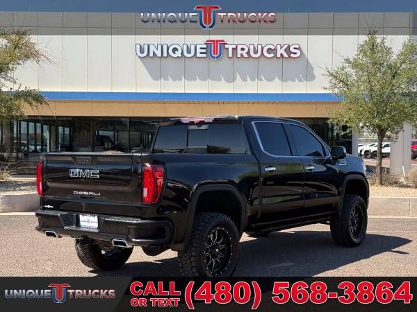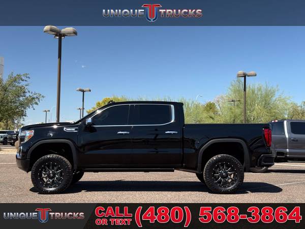 This lifted 2020 GMC Sierra 1500 Denali Edition Crew Cab 4x4 is as clean and eye-catching as they come. Finished in Onyx Black with bold chrome accents, this truck is a guaranteed head turner everywhere it goes. Step inside and you’re met with a premium jet black leather interior that delivers both comfort and style. The combination of the exterior and interior makes this Denali one of the sharpest lifted trucks on the road.Under the hood, this truck comes with the powerful 6.2 liter EcoTec3 V8 engine paired with a smooth 10-speed automatic transmission. The powertrain delivers great performance with plenty of torque for towing, hauling, or daily driving. With Dynamic Fuel Management, it can balance power and efficiency as needed, giving you the best of both worlds.This Sierra comes lifted with a custom lift kit that sets it apart from the rest. Sitting on black Fuel wheels with brand new all-terrain tires, the stance is aggressive and ready for anything. Whether you’re driving through the city or heading out on the highway, the lifted look and setup give this truck a strong presence while still providing a smooth ride.The safety and security features on this truck are loaded with advanced technology. It includes Driver Alert Package I with front and rear park assist, lane change alert with side blind zone alert, and rear cross traffic alert. You also get the safety alert seat, tire pressure monitoring with tire fill alert, and Driver Alert Package II with forward collision alert, lane keep assist, automatic emergency braking, pedestrian braking, and adaptive cruise control. Everything about this truck is designed to keep you and your passengers safe.Performance and mechanical features make this Denali a true workhorse. It comes with adaptive ride control, auto locking rear differential, 2-speed Autotrac transfer case, StabiliTrak with trailer sway control, hill start assist, and brake pad monitoring. Add in the trailer brake controller and trailering package, and this truck is fully ready to tow or haul with ease.Inside, the technology and comfort features shine. The GMC Premium Infotainment system with navigation, 8-inch HD touchscreen, voice recognition, Apple CarPlay, Android Auto, and Bluetooth keeps you connected. The Bose premium sound system delivers crisp audio, while wireless charging, USB ports, keyless start, and remote start make life easier. Dual-zone climate control, heated and ventilated front seats, heated rear seats, and driver memory functions take comfort to the next level.The interior also features 10-way power front bucket seats, a heated leather-wrapped steering wheel, and a rear 60/40 folding bench seat with storage. It’s built to handle both daily use and long drives with ease. The rear seat folds down or flips up for storage flexibility, making it as practical as it is comfortable.On the outside, the Denali comes with chrome assist steps, spray-on bedliner with GMC logo, LED reflector headlamps, LED fog lamps, dual exhaust with premium tips, and the GMC MultiPro tailgate. Add in chrome recovery hooks, a power sliding rear window, power folding heated mirrors, rear wheelhouse liners, LED cargo area lighting, and 12 fixed cargo tie-downs, and this truck is built for both work and play.At Unique Trucks, the price you see is the price you pay. There are no hidden markups, no add-on packages, and no extra fees. This truck has been fully serviced and is ready for its next owner today. We also offer our no obligation delivery service where this lifted Sierra can be brought right to your doorstep. You can test drive from the comfort of your own home, make your best deal over the phone, and if you don’t like it, you don’t buy it.We love trade-ins and make it easy to upgrade into one of our trucks or lifted trucks. We encourage you to come in and see our full lineup in person or take advantage of delivery. This lifted 2020 GMC Sierra 1500 Denali 4x4 with the Onyx Black exterior, jet black leather interior, custom lift kit, black Fuel wheels, and all-terrain tires is ready to go today.