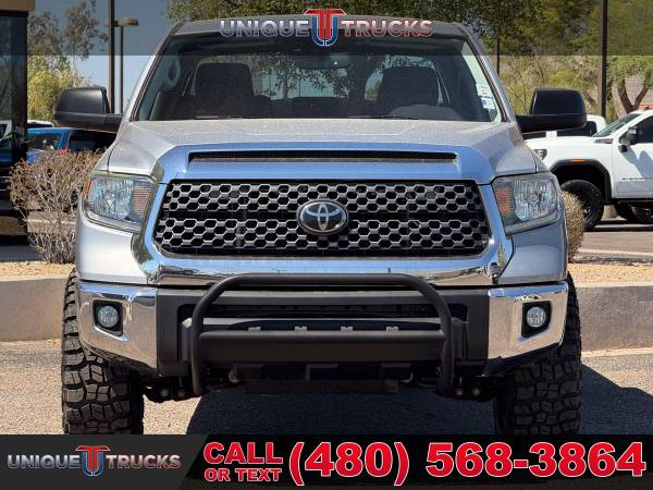 This 2020 Toyota Tundra CrewMax SR5 4x4 is one of the cleanest lifted trucks you’ll find, finished in Silver Sky Metallic with bright chrome accents that catch the light from every angle. Inside, it’s paired with a Black fabric cloth interior that keeps things sharp and practical, making this truck both eye-catching and comfortable.The stance on this Tundra sets it apart, thanks to a custom level kit paired with gloss black Vision wheels and fresh all-terrain tires. This combo not only gives it the lifted truck look everyone wants, but also adds the traction and toughness to handle dirt roads, gravel, or the open highway with confidence.Powered by the legendary 5.7L i-FORCE V8 engine, this Tundra delivers 381 horsepower and 401 lb.-ft. of torque. Matched with a 6-speed automatic transmission, this truck is ready for towing, hauling, and long-distance cruising without hesitation. Toyota’s 4WDemand part-time 4x4 system with Active Traction Control and Automatic Limited-Slip Differential ensures you’re in control no matter the conditions.The outside is loaded with details like halogen headlights with LED accents, chrome 4x4 and Tundra badging, fog lights, chrome bumpers, a gray grille with chrome surround, and front tow hooks. It also comes with a tonneau cover to keep your cargo safe and secure in the short 5.5-ft. bed.Inside, this CrewMax gives you space and comfort with seating for six, a 40/20/40 split front bench seat, and 60/40 split fold-up rear seats. The power rear window slides down for open-air driving, and the air conditioning with dust and pollen filter keeps everyone breathing easy.Tech and convenience features include an integrated backup camera, remote keyless entry, auto-dimming rearview mirror with compass and HomeLink, multiple 12V outlets, and Bluetooth with voice command. You’ll also enjoy Dynamic Radar Cruise Control and Lane Departure Alert right at your fingertips on the steering wheel.Toyota built safety into every inch of this truck. The Star Safety System brings Vehicle Stability Control, Traction Control, ABS with Electronic Brake-force Distribution, Brake Assist, and Smart Stop Technology. Add in eight airbags, LATCH child seat anchors, trailer sway control, and a tire pressure monitor, and you have a truck that’s ready for the road with confidence.When it comes to towing, this Tundra is ready with an integrated trailer brake controller, a trailer monitoring display, and a heavy-duty alternator and battery setup. Whether you’re hauling work equipment, a camper, or weekend toys, this truck is built to get the job done with ease.Toyota’s no-cost maintenance plan with roadside assistance adds even more peace of mind. This Tundra is also fully serviced and ready to hit the road for its next owner, meaning you won’t have to worry about a thing when you drive it home.At Unique Trucks, we make it easy to buy. With our no-obligation delivery service, you can have this Tundra dropped off at your doorstep and take a test drive right from the comfort of your own home. Make your best deal over the phone, and if you don’t like it, you don’t buy it. We love trade-ins and encourage you to come check out our great selection of trucks and lifted trucks today. ____________________________ 2020* 2021* 2019* TOYOTA* TUNDRA* CREWMAX* CREW* MAX* 4X4* FOUR WHEEL DRIVE* 4WD* GAS TRUCKS* LIFTED TUNDRA* LIFTED TRUCKS* CREWMAX* V8* TOYOTA TRUCKS* TOYOTA* LIFTED TRUCKS* LOW MILES* LOW MILEAGE* RELIABLE*