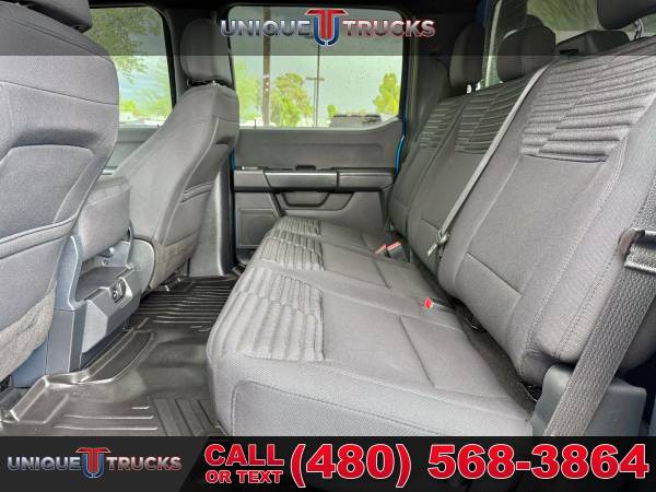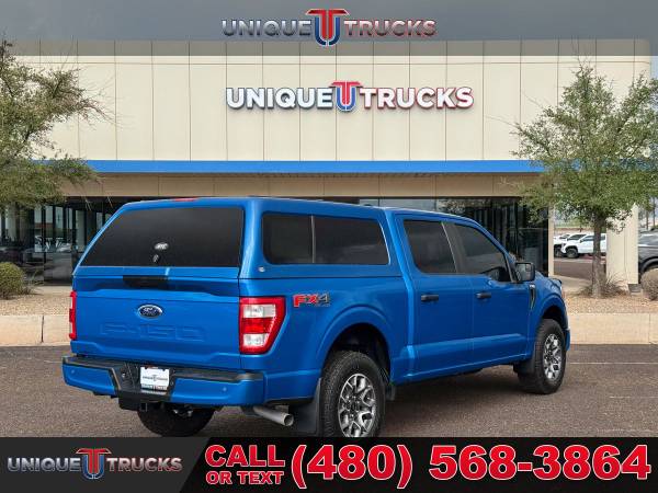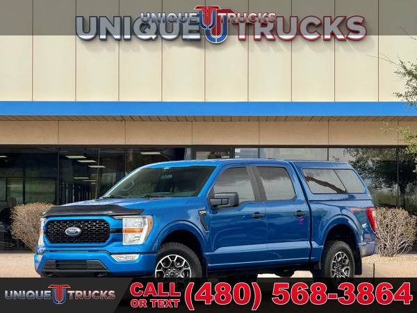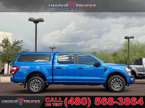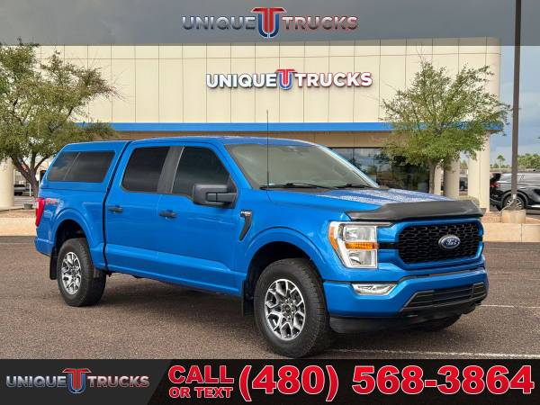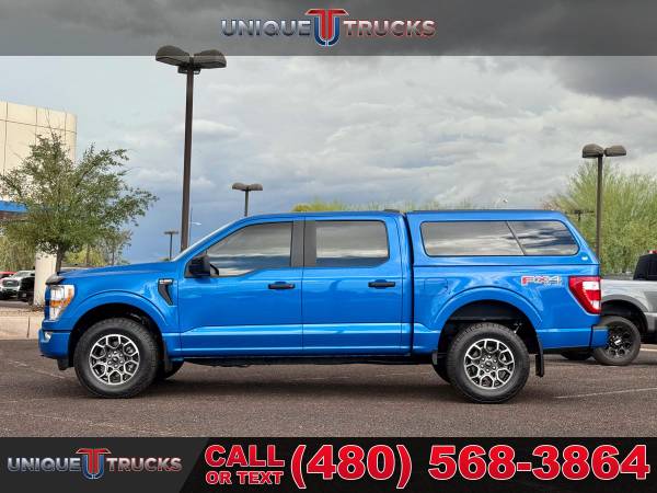 This clean 2021 Ford F-150 SuperCrew XL STX 4x4 is one eye-catching truck that is ready to turn heads. The Velocity Blue Metallic exterior looks sharp from every angle, and the matching color-keyed camper shell ties the look together for a clean finish. The STX appearance package brings in sporty details, including the 18-inch 6-spoke magnetic pocket wheels, fog lamps, privacy glass, and rear-window defroster. This is one of the cleanest trucks you’ll find and it’s guaranteed to get noticed anywhere it goes.The inside of this truck is just as sharp, with black STX sport cloth seating laid out in a 40/20/40 split design. The seats are built for comfort and use, and the rear bench folds in a 60/40 setup to give more storage when you need it. Dual sunvisors, a tilt and telescoping steering column, a 4-inch productivity screen, and a message center with outside temp, compass, and trip computer make the cab user-friendly. Power windows, locks, and multiple 12V outlets add convenience to this clean setup.Under the hood sits the strong 5.0-liter V8 engine, which delivers the kind of power that makes the F-150 a trusted truck for both work and play. Paired with the smooth electronic 10-speed automatic transmission, this truck delivers the right mix of strength and control. It is also flex-fuel capable, which gives more options at the pump. This F-150 is ready to tow, haul, or take on whatever you throw at it, all while keeping the drive smooth and easy.The FX4 Off-Road Package adds even more to this truck’s capability. Skid plates, off-road tuned shocks, and selectable drive modes help this lifted truck handle trails, dirt roads, or tough job sites. Trailer sway control, dynamic hitch assist, and the Class IV trailer hitch make it ready for towing. With its 3.31 electronic locking rear axle and 7050# GVWR package, this truck has the strength to move heavy loads without breaking a sweat.The exterior features on this F-150 bring both style and function. Daytime running lamps, halogen headlights with auto high beam and autolamp settings, wipers with intermittent function, and a locking removable tailgate make driving and using this truck simple and safe. The pickup box tie-down hooks make it easy to secure cargo, while the fully boxed steel frame underneath keeps it solid and tough.Inside the cab, you’ll find modern touches to keep you connected and comfortable. FordPass Connect™ with 4G hotspot capability keeps devices online wherever you go. Cruise control and reverse sensing system make highway and city driving easier. The interior was designed for daily use, giving you everything you need without the extra fuss.Safety and security come built into this truck with features like AdvanceTrac™ with Roll Stability Control, airbags for front and side impact, the Safety Canopy® system, SecuriLock® anti-theft, SOS Post-Crash Alert System™, and a tire pressure monitoring system. These details give peace of mind whether you’re using the truck for work, family, or travel.This F-150 also includes helpful features like auto hold, curve control, fail-safe cooling, SelectShift®, and gas-charged shocks with outboard-mounted rear shocks for better ride control. Pre-collision assist with automatic emergency braking and a rear-view camera are standard and keep you safe when backing up or driving in tight spots. This truck has the right mix of practical features and strong performance.At Unique Trucks, the price you see is the price you pay. There are no hidden markups, no addendums, and no surprise fees. What you see is what you get. We also offer our no obligation delivery service, where this lifted truck can be delivered right to your doorstep. You can test drive it from the comfort of your home, make your best deal over the phone, and if you don’t like it, you don’t buy it. It really is that simple.This clean 2021 Ford F-150 SuperCrew XL STX is fully serviced and ready for its next owner. At Unique Trucks we love trade-ins, and we always encourage you to come by and check out our trucks and lifted trucks in person. Whether you’re looking for a truck to tow, haul, or just drive daily in style, this F-150 has the look, the power, and the features to deliver.