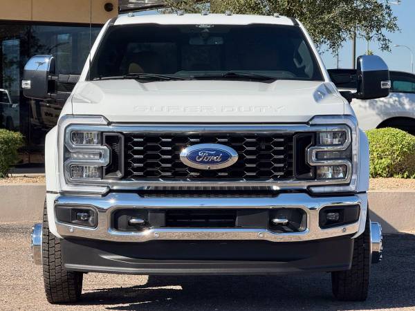 This 2024 Ford F-450 Super Duty Lariat Crew Cab Dually is built to get attention and built to get the job done. It comes finished in Oxford White with clean chrome accents that give it a sharp and solid look. This truck is the kind that stands out the moment you see it, and it is hard to find one this clean and this well kept.The Lariat Ultimate Package brings a higher level feel, and the Baja leather interior fits perfectly with the style of this truck. The inside is roomy, comfortable, and laid out in a way that feels easy to use every day. The seats are supportive, the materials feel nice to the touch, and the cabin stays quiet and smooth whether you're driving around town or pulling something heavy on the highway.Under the hood is the 6.7L High Output Power Stroke diesel engine paired with the smooth 10-speed TorqShift automatic transmission. This setup gives you strong pulling power, easy shifting, and dependable performance. This dually with dual rear wheels is ready to tow, haul, and handle work or travel with confidence. The truck feels sure on the road, steady under load, and controlled even when pulling heavy weight.On the outside, you get LED reflector headlamps, auto high beams, tow hooks, tie-down hooks in the bed, and a power sliding rear window. The power tailgate lock and Powerscope power-fold tow mirrors make hooking up and backing trailers easier. Trailer brake controller and trailer sway control help keep things stable. This truck is ready for towing right from the start.Inside, you have a 12" productivity screen, dual-zone climate control, power windows and locks, and power front seats. The leather steering wheel with audio controls, tilt and telescope steering column, and large display make driving simple and comfortable. A 120V outlet adds daily function, and the air filtration system keeps the cabin fresh.For tech and convenience, this truck brings the 360-degree camera system, B&O sound system, connected navigation, SYNC 4 with a 12" touchscreen, and FordPass™ 5G Wi-Fi hotspot capability. Remote keyless entry, reverse sensing, and the electrochromic mirror all make daily use easier. This setup is great for both work and travel.Safety features include AdvanceTrac with RSC, the advanced security pack, airbags with Safety Canopy, LED center high mount stop lamp, Securicode keypad, and SOS Post-Crash Alert System. BLIS with cross-traffic alert helps when changing lanes and backing up, and pre-collision assist with automatic braking is there for added peace of mind.This truck also includes the FX4 Off-Road Package with skid plates, making it ready for off-road trails or uneven job sites. Power running boards, upfitter switches, tailgate step, pro power onboard, and the twin panel moonroof round out a setup that brings comfort, work use, and style all together.This Super Duty has been fully serviced and is ready for its next owner. It drives great, looks clean, and is set up to tow or haul right away. It is truly a head turner, and dually trucks this clean do not last long.At Unique Trucks, the price you see is the price you pay — no hidden markups and no add-on fees. And we offer No Obligation Delivery, where we bring the truck right to your doorstep for a test drive at your home. Make your best deal over the phone, and if you don’t like it, you don’t buy it. We love trade-ins, and we encourage you to come see our trucks and lifted trucks in person or have this one delivered to you. ____________________ 2024* 2023* FORD* F-450* F450* F 450* SUPERDUTY* LARIAT* ULTIMATE PACKAGE* DUAL REAR WHEEL* DRW* DUALLY* DIESEL TRUCKS* FORD TRUCKS* LARIAT* CREW* DIESEL* HI-OUTPUT* DIESEL* DUALLY* LOW MILES* LOW MILEAGE* RELIABLE* ONLY*