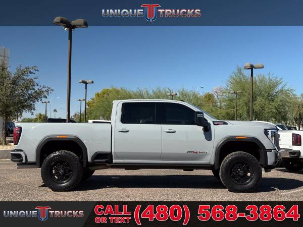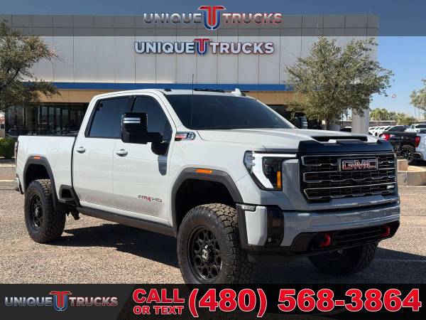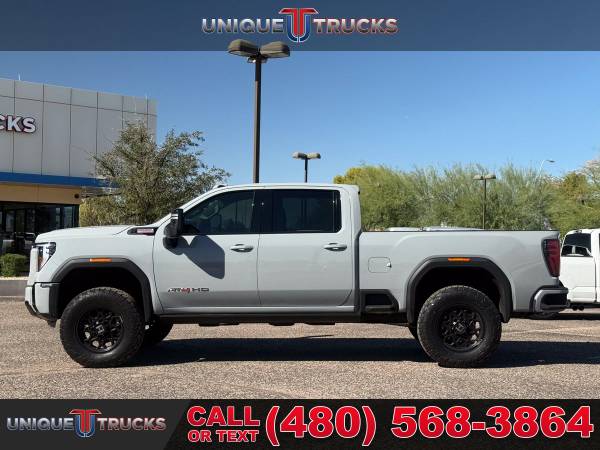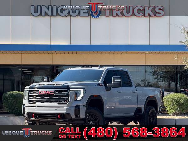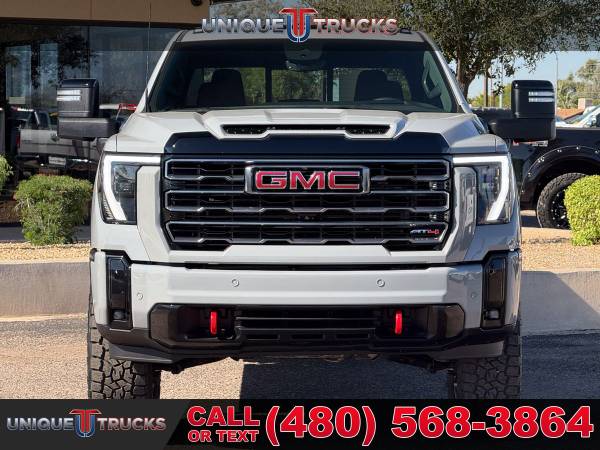 Here’s your chance to own one of the nicest, cleanest, and hardest-to-find lifted trucks out there — a 2025 GMC Sierra 3500HD AT4 Edition Crew Cab 4x4 finished in the eye-catching Thunderstorm Grey Metallic with bold black accents. This truck looks sharp from every angle and is guaranteed to turn heads wherever it goes. It’s powered by the 6.6-liter Duramax V8 turbo diesel engine paired with the smooth-shifting Allison 10-speed automatic transmission, giving you power, control, and dependability all in one package.This lifted AT4 sits on a professionally installed 3-inch Rough Country red upper control arm kit with M1 monotube shocks, giving it the perfect lifted stance while still keeping a comfortable ride. It rolls on H132 20x9 8x180 12mm Asphalt Hostile Anvil wheels wrapped in brand new 37x12.50R20LT Toyo Open Country A/T III tires, making this truck look aggressive and ready for anything. From the street to the job site, this lifted GMC Sierra 3500HD has the presence and performance to back it up.Inside, the cabin is designed for comfort and style with a clean Jet Black and Kalahari leather interior. The heated and ventilated front seats and heated second-row outboard seats keep everyone comfortable year-round. The power sunroof brings in light and air, while the Bose premium sound system fills the cabin with rich, clear sound. There’s also wireless phone charging, adaptive cruise control, and a premium set of floor liners to keep the interior looking sharp.The GMC Premium Infotainment System features a 13.4-inch full-color touchscreen with built-in Google compatibility, navigation, Bluetooth, and both wireless Apple CarPlay and Android Auto. You also get SiriusXM with 360L, OnStar, and a rear camera mirror for added visibility. With features like the head-up display and bed view camera, this truck combines modern technology with practicality.Safety is a top priority with the Sierra HD Pro Safety package, which includes trailer side blind zone alert, rear cross-traffic alert, HD surround vision, lane departure warning, forward collision alert, front pedestrian braking, and a driver safety alert seat. Automatic emergency braking, following distance indicator, and Intellibeam auto high beams all add confidence to your drive whether you’re towing or cruising through town.Performance-wise, this 3500HD AT4 doesn’t hold back. It features a 2-speed active electronic Autotrac transfer case, trailer brake controller, auto-locking rear differential, Stabilitrak with trailer sway control, and hill start assist. The truck is ready to tow with a factory gooseneck/5th wheel prep package, trailer hitch guidance with hitch view, and a heavy-duty trailering package built for real work.On the exterior, the truck stands tall and aggressive with its 20-inch high-gloss black aluminum wheels, LED projector headlamps, front LED fog lamps, LED roof marker lamps, and spray-on bed liner. The GMC MultiPro tailgate makes loading easy, while the power-retractable assist steps with LED lighting add both function and style. The power-folding and extending mirrors include heating, auto-dimming, turn signals, and perimeter lighting for safety and convenience.This AT4 also features a power sliding rear window, rain-sensing wipers, bed power outlets, and LED cargo bed lighting for when you’re working late or early. The 120V AC outlets in both the cab and cargo bed make it easy to power tools or devices on the go. From its 3.42 rear axle ratio to its 12,100-pound GVWR, this GMC Sierra 3500HD AT4 is ready to handle serious towing and hauling with confidence.At Unique Trucks, the price you see is the price you pay — no hidden markups, no addendums, just honest pricing on the cleanest, nicest lifted trucks around. Every vehicle is fully serviced and ready to hit the road, and this 2025 Sierra 3500HD AT4 is no exception. It’s a truck that looks good, drives great, and has all the right upgrades.We also offer No Obligation Delivery, where your new truck can be delivered right to your doorstep. Test drive it from the comfort of your home, make your best deal over the phone, and if you don’t like it, you don’t buy it — simple as that. We love trade-ins and encourage you to come visit and check out our full selection of trucks and lifted trucks in person. This lifted Sierra AT4 is ready for its next owner and guaranteed to impress. ______________________________________________________ 2025* 2024* GMC* SIERRA* 3500HD* 3500* DIESEL* DURAMAX* DIESEL TRUCKS* LIFTED TRUCKS* GMC TRUCKS* AT4* LOW MILES* LOW MILEAGE* RELIABLE* ONLY* DIESEL TRUCKS* DURAMAX* LIFTED TRUCKS* LIFTED GMC* LIFTED SIERRA* DURAMAX* DIESEL* ALLISON TRANSMISSION* HOSTILE WHEELS* RELIABLE* ONLY*