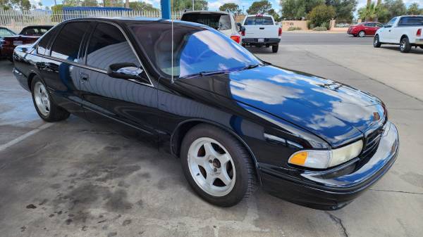 1996 CHEVROLET IMPALA SS 2 OWNER ARIZONA CAR WITH ONLY 86,500 MILES....THIS THE LAST YEAR OF THE REAR WHEEL DRIVE IMPALA SS.....AND THE ONLY YEAR THAT THE AUTOMATIC SHIFTER WAS IN THE CENTER CONSOLE ON THE FLOOR...THE PHOTOS WILL SHOW WE HAVE THE QUARTER PANEL AND TRUNK EMBLEMS THAT THE PREVIOUS OWNER REMOVED SO THEY WOULDN'T BE STOLEN...THIS CAR IS STOCK ORIGINAL...NO MODIFICATIONS....AND NO MIDWEST OR EAST COAST CORROSION....NEW WATER PUMP AND OPTISPARK IGNITION ONLY $20,500.......ALSO PLEASE BE AWARE THAT THIS CLEAN VEHICLE HAS BEEN FULLY INSPECTED AND HAS PASSED EMISSION TESTING REQUIRED IN PIMA COUNTY…...SEE MORE AT BOBROSSMOTORS.COM OR VISIT US AT 3520 N ORACLE RD OR CALL 293-3277. . ..WE ARE OPEN MONDAY THROUGH SATURDAY FROM 9-5.