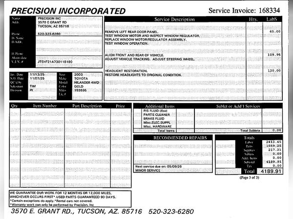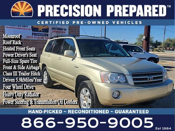 Precision Auto Sales of Tucson* *Call us today at (520) 289-6954* *Toyota Highlander 4dr V6 4WD (Natl) SUV 4wd 3L V-6 DOHC, variable valve control, regular unlea* *Toyota* *4dr V6 4WD (Natl)* *Toyota Highlander 4dr V6 4WD (Natl) SUV 4wd 3L V-6 DOHC, variable valve control, regular unlea**Toyota* *custom* *automatic* *SUV* *3L V-6 DOHC, variable valve control, regular unlea* *4wd* *Call us today at (520) 289-6954* *Toyota* *custom* *automatic* *Contact Tim Metro