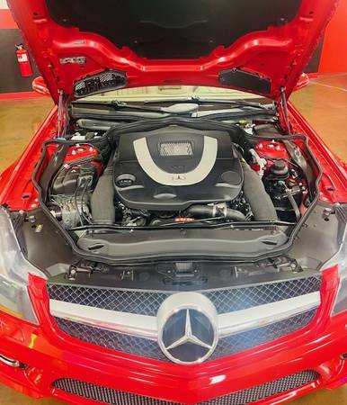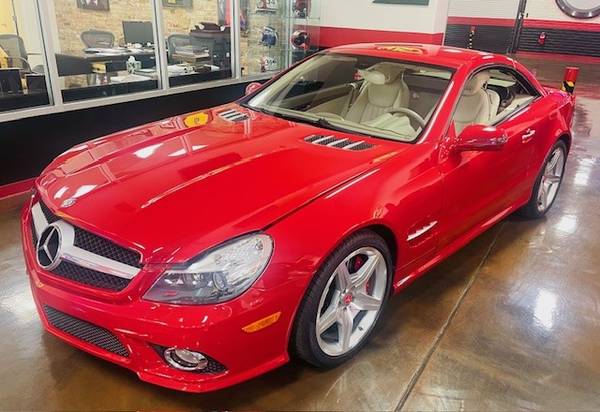 2011 Mercedes-Benz SL550 retractable hardtop roadster red exterior/tan interior with 29,355 miles for $27,500. The car is in great shape and features a 5.5L V8 engine, With a 7 Speed Automatic Transmission. The car has been well cared for.