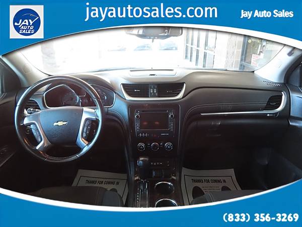 Introducing the 2017 Chevrolet Traverse 4dr LT w/1LT Automatic - the ultimate family vehicle that combines style, comfort, and performance. This spacious 7-seater SUV boasts a powerful V6 engine and smooth automatic transmission, providing a seamless driving experience. The sleek exterior design is complemented by a luxurious interior featuring premium cloth seats and modern technology, including a touchscreen infotainment system and rearview camera. With ample cargo space and advanced safety features, the Traverse is perfect for road trips or daily commutes. #ChevyTraverse #FamilySUV #EffortlessDriving. Don't settle for less, choose the Traverse and experience the perfect blend of sophistication and practicality. #UpgradeYourDrive #AdventureAwaits.