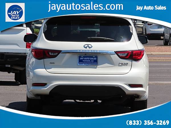Jay Auto Sales* *Call us today at (520) 881-5400* *Infiniti QX60 PURE AWD SUV 4wd 3.5L V-6* *Infiniti* *PURE AWD* *Infiniti QX60 PURE AWD SUV 4wd 3.5L V-6**Infiniti* *white* *automatic* *SUV* *3.5L V-6* *4wd* *Call us today at (520) 881-5400* *Infiniti* *white* *automatic* *Contact Jay, Arash and David David