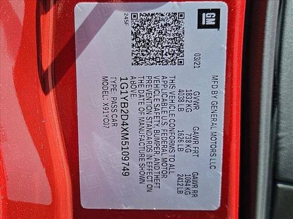 * Front Lift Adjustable Height With Memory * Suspension; Magnetic Selective Ride Control * Exhaust; Performance * Engine Appearance Package * Red Mist Metallic Tintcoat * Roof Panel; Transparent; Removable * Lpo; Composite Rockers; Black * Leather Seats * Navigation System * Seat Belt Color; Natural * Lpo; Custom Splash Guards; Black * Lpo; Floor Mats; Premium Carpeted * Lpo; Roof Panel Storage Pouch * Lpo; Contoured Cargo Area Liners * Lpo; Rear Fascia/Roof Storage Protector In Black * Keyless Start * Heads-Up Display * Cooled Front Seat(S) * 2Lt Preferred Equipment Group * Audio System; Chevrolet Infotainment 3 Premium System With Connected Navigation * Emissions Override; Federal * Emissions; Connecticut; Delaware; Maine; Maryland; Massachusetts; New Jersey; New York; Oregon; Pennsylvania; Rhode Island; Vermont And Washington State Requirements; 50-State Certified * Engine; 6.2L V8 Di; High-Output * Natural; Mulan Leather Seating Surfaces With Perforated Inserts * Seats; Gt1 Bucket * Tires; 245/35Zr19 Front And 305/30Zr20 Rear; Blackwall; All-Season; Performance * Transmission; 8-Speed Dual Clutch; Includes Manual And Auto Modes * Wheels; 19" X 8.5" (48.3 Cm X 21.6 Cm) Front And 20" X 11" (50.8 Cm X 27.9 Cm) Rear 5-Open-Spoke Bright Silver-Painted AluminumThis vehicle includes a Money-Back Guarantee* and passed our precise inspection process. Best of all the price you see is the price you pay. No haggling. No back and forth. No pressure. And this price is so good it is guaranteed.*Money-Back Guarantee is valid for 5 days or 250 miles, whichever comes first. Subject to certain terms and conditions. See store for details. Some restrictions apply.