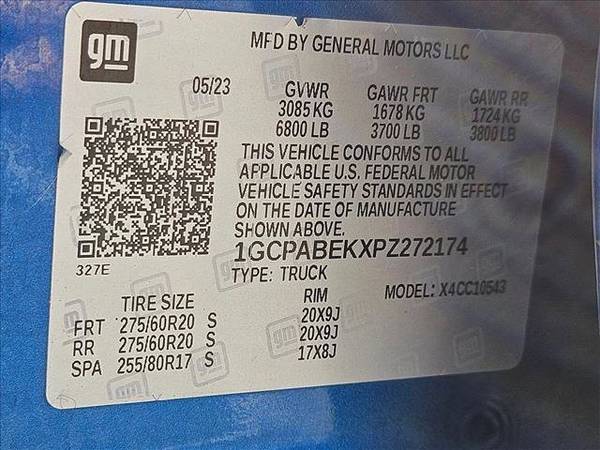 * Chevytec Spray-On Bedliner; Black * Glacier Blue Metallic * Lpo; Dark Essentials Package * Lpo; Black Bowtie Emblem; Front * Lane Keeping Assist * Keyless Start * Audio System; Chevrolet Infotainment 3 System * Custom Preferred Equipment Group * Emissions; Federal Requirements * Engine; 2.7L Turbo High-Output * Jet Black; Cloth Seat Trim * License Plate Kit; Front * Lpo; Black Nameplates * Lpo; Black Tailgate Lettering * Rear Axle; 3.42 Ratio * Seats; Front 40/20/40 Split-Bench * Steering Column; Manual Tilt And Telescoping * Tires; 275/60R20 All-Season; Blackwall * Transmission; 8-Speed Automatic; Electronically Controlled * Wheels; 20" X 9" (50.8 Cm X 22.9 Cm) Bright Silver Painted Aluminum * Not Equipped With Usb Ports; Rear; See Dealer For Details * Not Equipped With Steering Column Lock; See Dealer For DetailsThis vehicle includes a Money-Back Guarantee* and passed our precise inspection process. Best of all the price you see is the price you pay. No haggling. No back and forth. No pressure. And this price is so good it is guaranteed.*Money-Back Guarantee is valid for 5 days or 250 miles, whichever comes first. Subject to certain terms and conditions. See store for details. Some restrictions apply.