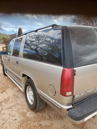 Clean Champagne 99 GMC Suburban, 5.7 votec v8, strong engine, 2wd, a/C blows hot, great towing vehicle, good tires, very dependable vehicle